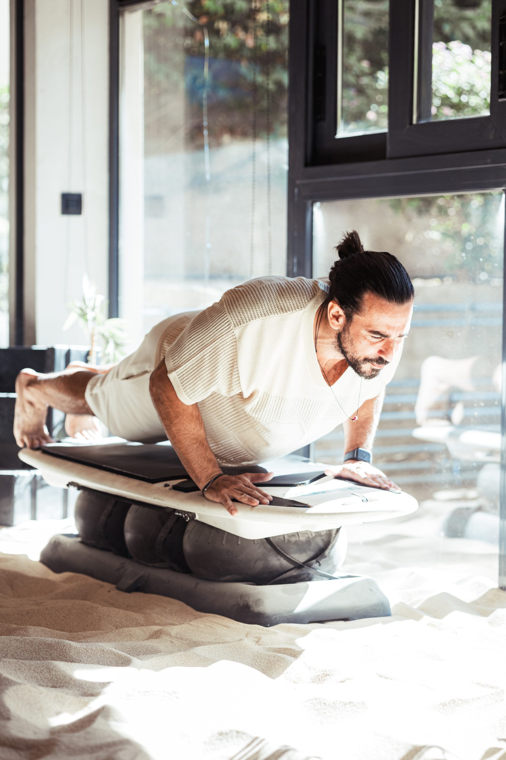 Ζήσε την εμπειρία της προπόνησης πάνω σε σανίδα surf — χωρίς κύματα, με απόλυτο έλεγχο.